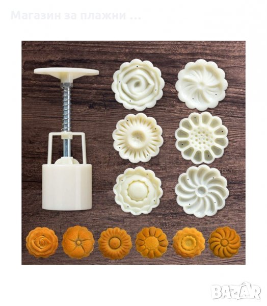 Преса от пластмаса с 6 релефни приставки за сладки и бисквити