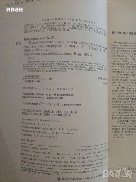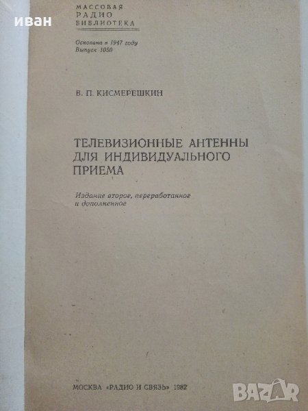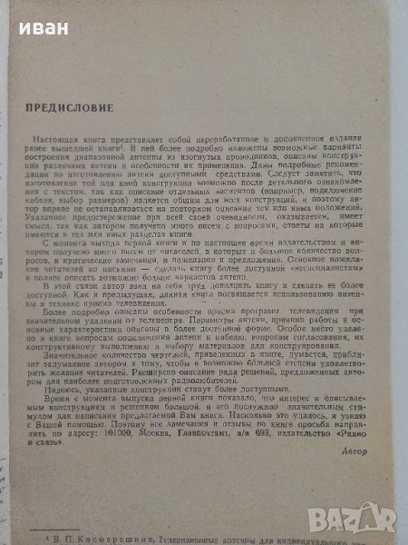 Телевизионные антенны для индивидуального приема - В.Кисмерешкин - 1982 г → Обява 33912362