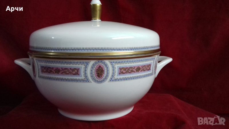 Баварски порцелан ръчно рисуван. Включва супник 2400 мл, плато 30 см и сосиера
