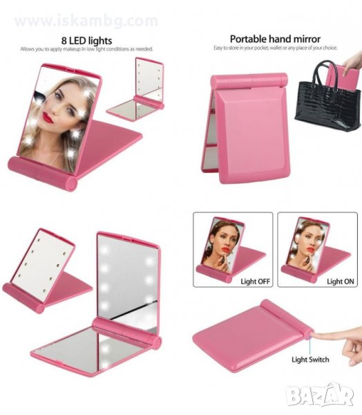 Така ще осветите лицето си добре, за да не пропускате детайли, докато се гримирате. Капака на огледалото може да се обръща на 270 градуса, така че да се използва като настолно огледалце.
