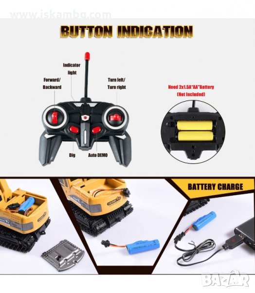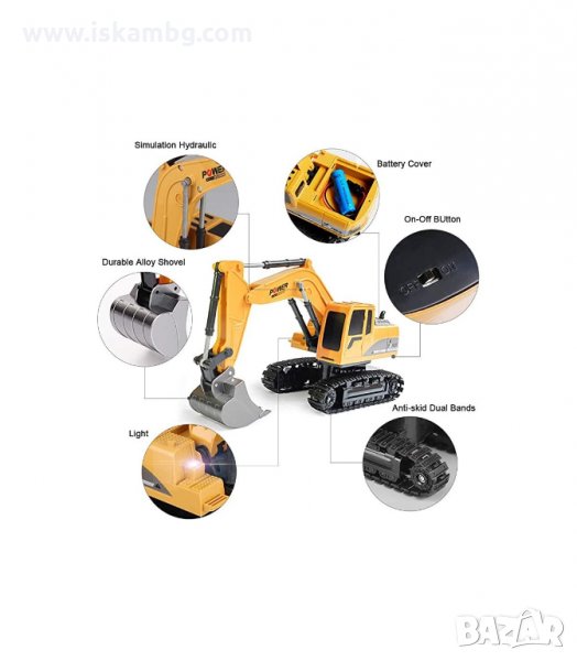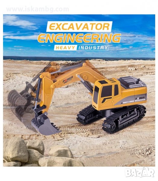 Изключително атрактивна играчка за всеки млад строител. Багер ЕКСКАВАТОР с подвижно гребло, вериги и ротация на корпуса. Играчката разполага със звукови и светлинни ефекти. Багерът е способен да гази в пясъка и да копае. Управлява се от разстояние посредством 6 канално дистанционно управление.
