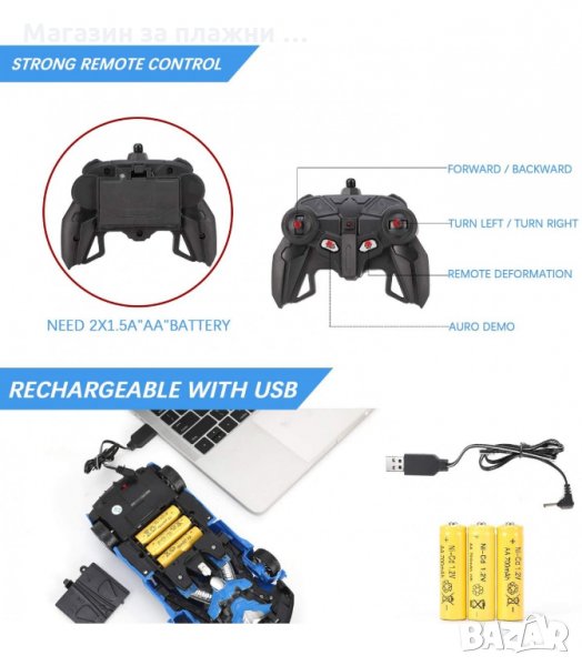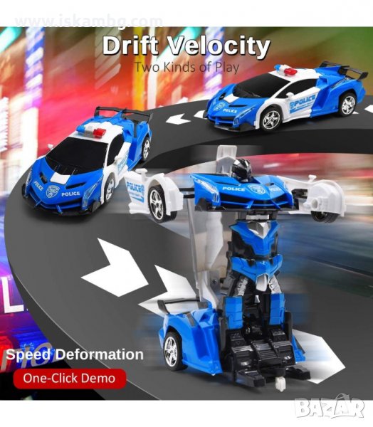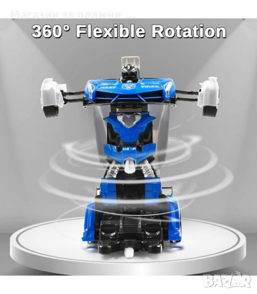 Автомобилът се трансформира автоматично от автомобил в робот, когато натиснете бутона на дистанционното управление. Преобразува се напред и назад лесно и доста ефектно. Колата има 4 гладки колела и може да направи 360 градусово завъртане, гъвкаво както в модела на робота, така и във формата на автомобил.