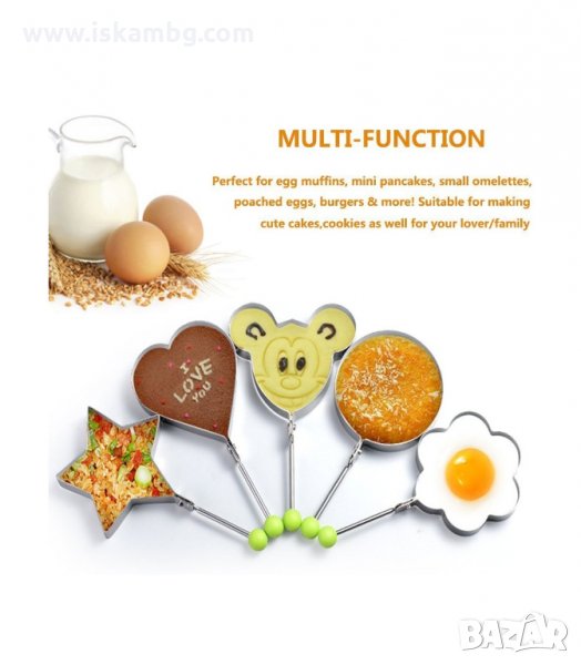 Метална формичка за приготяне на пържени яйца,омлет и забавни сандвичи. Приготви пържени яйца в интересна форма на сърце, звезда или цвете.