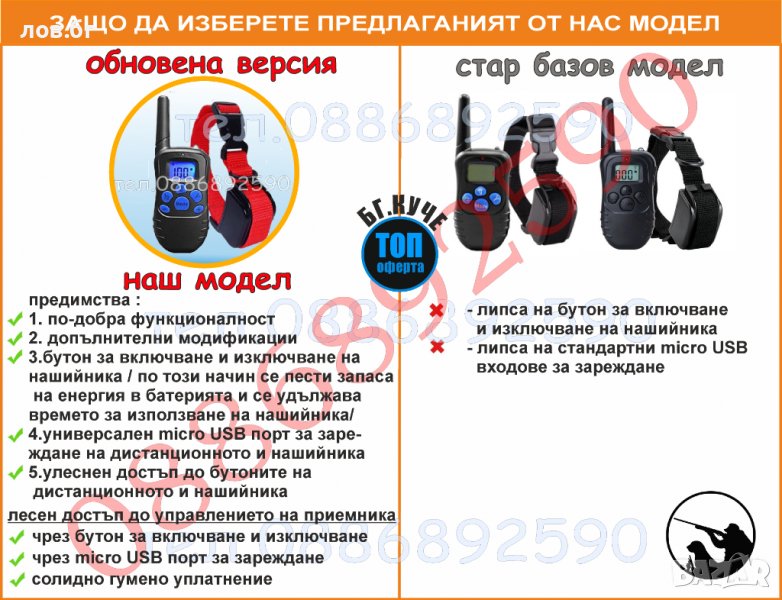 Модел 2023 година Допълнително модифициран, водоустойчив с презареждащи литиево йонни батерии на нашийника и дистанционното. Светещ дисплей улесняващ командите нощно време.