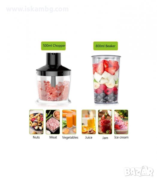 Този ръчен блендер е оборудван с мощен 1100 W мотор, за да се справи с повече задачи за смесване В тиха среда и перфектно 2 остри остриета от 304 неръждаема стомана могат да нарязват храната бързо и лесно, идеално за бебешка храна, супи, сокове, смутита и др.