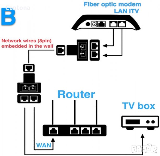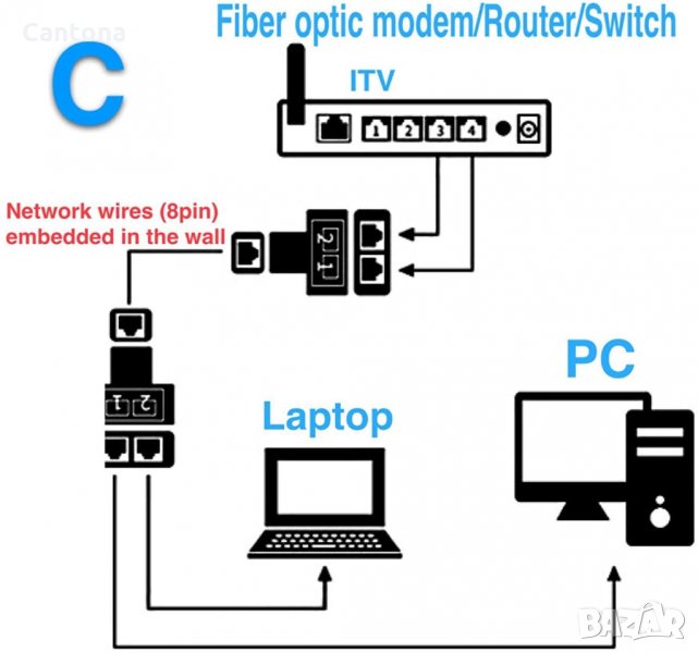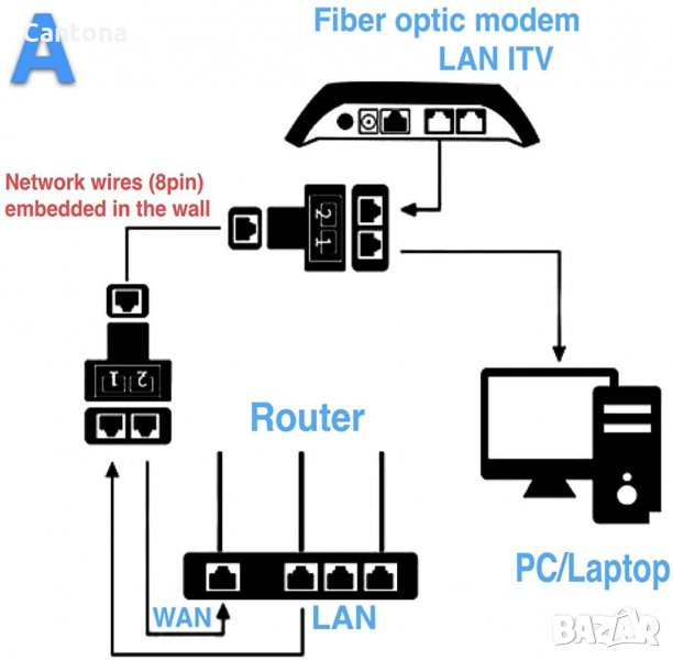 + С този LAN сплитер може да използвате един лан кабел за да свържете две устройства.