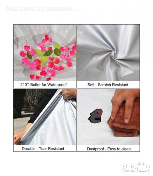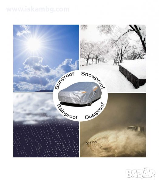 То също така ще помогне на автомобила да остане чист и защитен от дъжд, сняг, прах и животински екстременти. Използвайте това покривало в гаража или на открито. Универсално покривало за кола в различни размери.