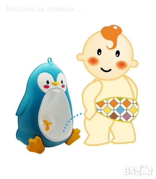 Този практичен писоар ще направи всички малки момчета щастливи. Писоарът ще служи като тренировъчна тоалетна. Просто го прикрепете към плочките, като използвате двете силни вендузи, които са включени в пакета. След употреба просто извадете корема на пингвина, измийте го и го закачете отново.