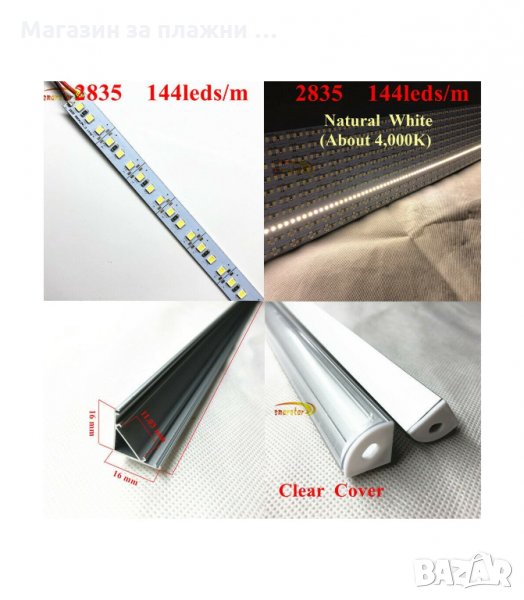 Ъглов алуминиев профил с лед осветление - 1 бр.