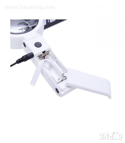 Професионална компактна универсална ръчна и настолна лупа с 8 LED осветление с голямо увеличение 5X и 11X диаметър 75мм регулиране силата на светене и два вида захранване за четене, шиене на гоблени, бродиране, бродерия, козметик, бюро, часовникарска за работа, злато, електроника, рисунки, рисуване, свободни ръце, телефон, монитор, компютър, монети, маникюр, платки, проверка на лична карта и банкноти, запояване, диаманти, документи, деца, десктоп, насекоми, маса, марки и др.