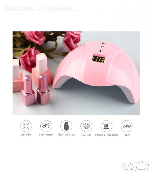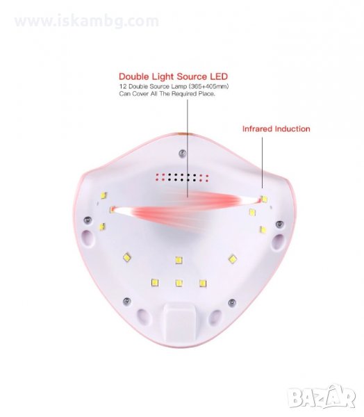 Полимеризира едновременно UV и LED продукти за нокти – гел лак, гелове за ноктопластика, основа и топ за гел лак и др. С таймер за 10/60/90 секунди. С 12 UV и LED диода.