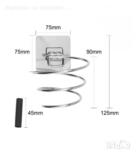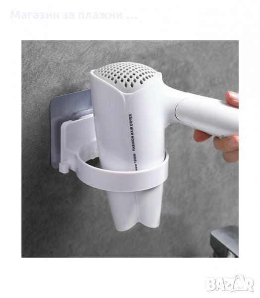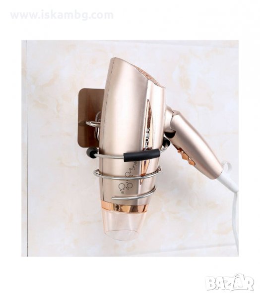 Поставката е изключително полезен аксесоар, в който можеш да поставиш дори работещ сешоар, а освен това за по-голям комфорт има и допълнителен отвор за четка за коса. Монтиране чрез самозалепващ стикер, без да е нужно да пробивате стената; Стойката за сешоар има кукичка за поставяне на кабела, когато не го ползвате;