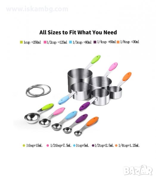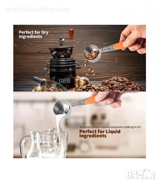 Подходящи за измерване на кафе, мляко, захар и всякакви други сухи или течни подправки.