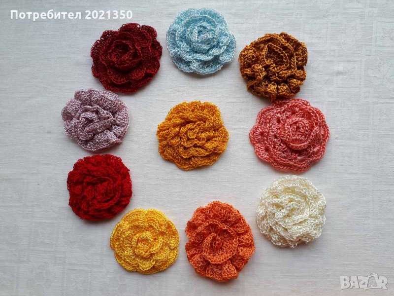 Ръчно плетени аксесори - копринени малки и големи брошки → Обява 33919132