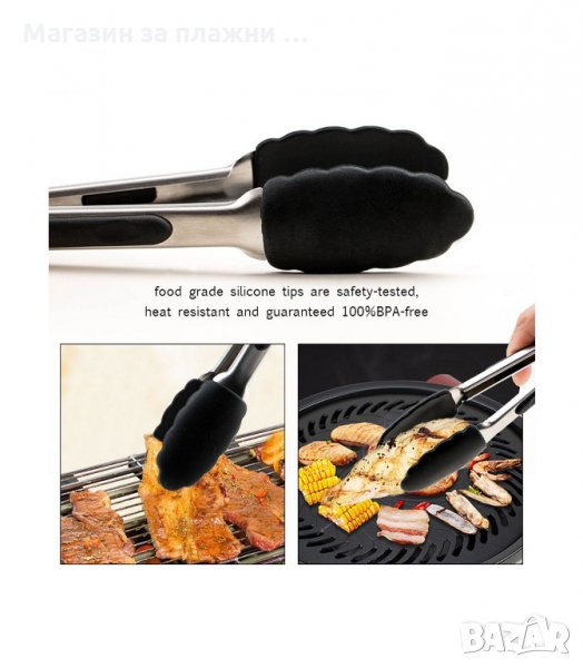 Голяма метална щипка за скара, готвене и сервиране със силиконово покритие