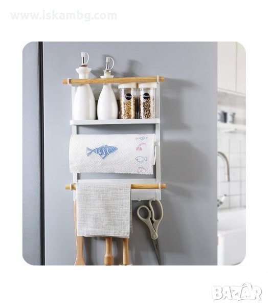 Повечето съвременни кухни са част от всекидневната и мястото е ограничено. Ето защо, този практичен органайзер може да ви е от голяма полза - необходимо е просто да го закрепите за страничната част на хладилника и може да подредите всякакви пособия - черпаци, бъркалки, отварачки, кухненска хартия, кърпи, ръкохватки. Също така бихте могли да намерите и друго предназначение на органайзера и да го поставите там, където имате нужда от него.