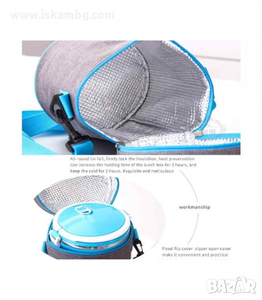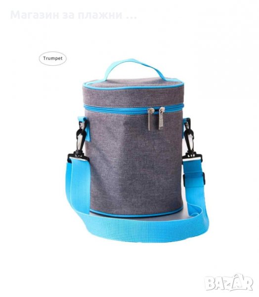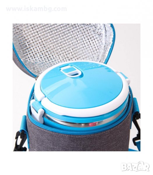 Чантата е със специално вътрешно покритие, което служи за температурна изолация. Практична с цветен дизайн, удобна за хващане дръжка и презрамка за носене.