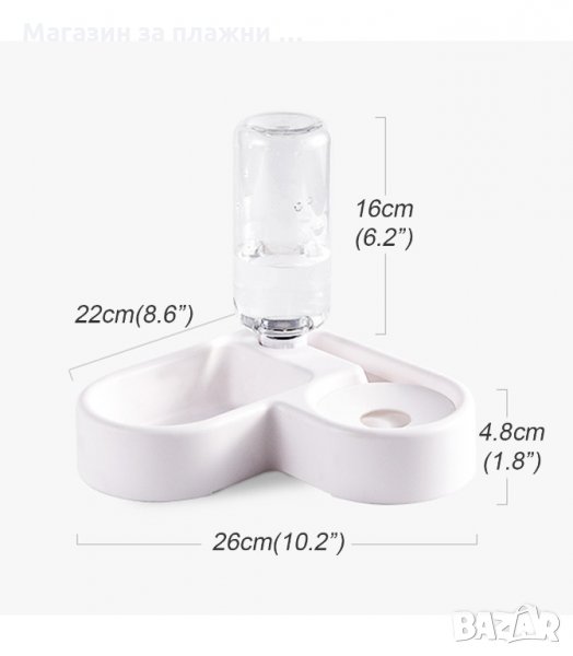 Бутилката за вода е с вместимост 500 мл. и пропуска водата до определено ниво, предотвратявайки разливане. Ринга на отделението за водата предпазва от намокряне козината около устата на кучето или котката. Ъгловият дизайн спестява място в дома ви.