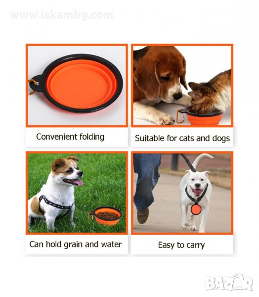 Подходяща за кучета от дребни породи и котета. Купата е изключително лека, оборудвана със карабинер , който може да закачите за чанта , каишка , колан и други.