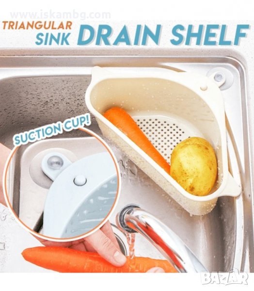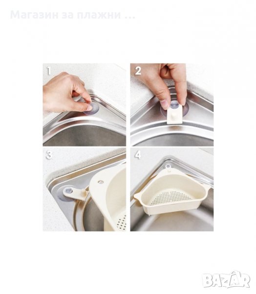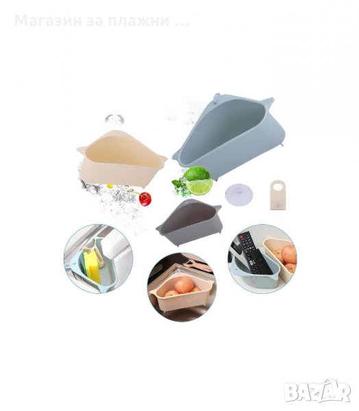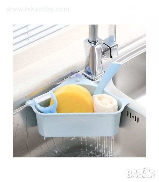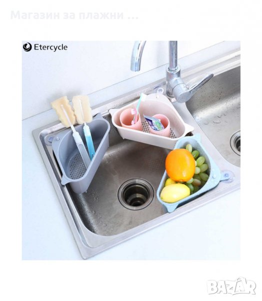 В тази поставка за кухненската мивка можете да съхранявате всичко - гъби и телчета за миене на съдове, прибори и белачки.. Поставката се залепва за мивката или плочките на стената с вакуумни лепки и ви помага да организирате и разчистите пространството около мивката или кухненския плот.