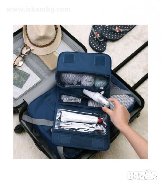 Пътната чанта за тоалетни принадлежности е подходяща за пътувания, като лесно организирате всичките си тоалетни принадлежности и козметика в нея. Изработена е от висококачествена водоустойчива покривна тъкан, с кукичка за лесно окачване и спестяване на място. С няколко отделения за съхранение на всичките ви принадлежности.