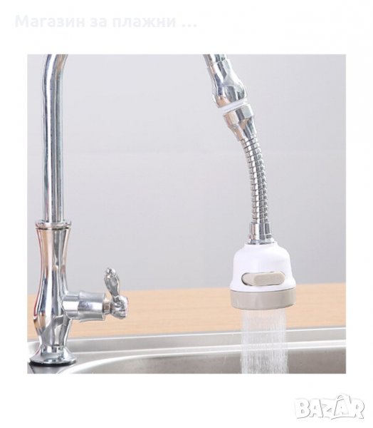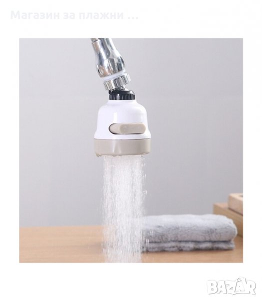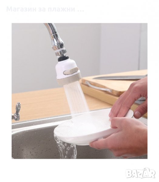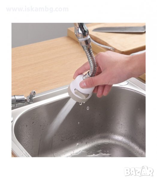 Удобен накрайник, универсален и съвместим с повечето чешми. Той има 3 функции на водната струя, които се променят само с един бутон и ви спестяват вода. Перката във вътрешната част на накрайника намалява налягането на водата и предпазва от пръски. С функцията на ротация на 360 градуса, водата достига и до най-отдалечените ъгли на мивката.