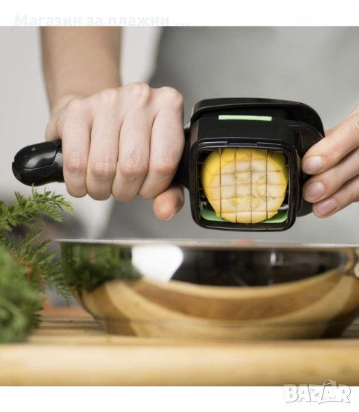 Рендето Nicer Dicer Quick може да се използва за меки и по-твърди храни като лук, тиквички, домати, гъби, яйца, краставици , картофи и още много други продукти. Стоманени остриета разрязват всичко за секунди. С помощта на компактното ренде Nicer Dicer Quick може да настържете или нарежете продуктите директно в купата, тигана или тенджерата.
