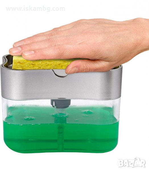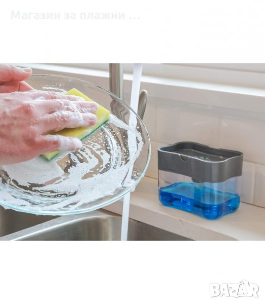 Контейнерът с почистващ препарат за гъба може и да не е революционно изобретение, но скоро ще се превърне в запазена марка за кухненското ви оборудване. Като цяло е много удобен и практичен – с помощта му вашата кухненска гъба е винаги напоена с препарат и готова за употреба. Времето за измиване на чиниите ви ще се съкрати значително. С лекота почиствате кухненския си плот, печката и други повърхности. Препаратът, който поставяте в контейнера – дозатор е изцяло ваше решение, в зависимост от това дали ще миете съдовете, или ще ги подготвяте за миялната машина.