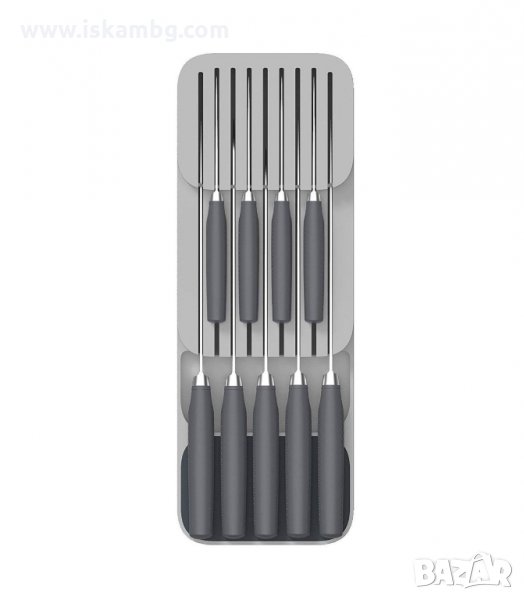 Забравете за разхвърляните из чекмеджетата ножове с този супер оригинален органайзер! Той е проектиран за 8 броя ножа с различна дължина на острието. Те са надлежно прибрани и съхранени, без опасност да се порежете докато посягате към тях. Необходим за всяка кухня!