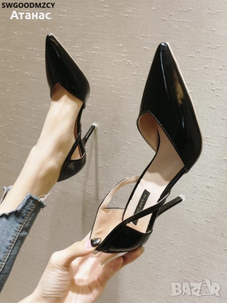 Стилни дамски сандали с тънко токче 8см, черен лак, налични само в размер 39. Естествена кожа! Изключително меки и удобни!