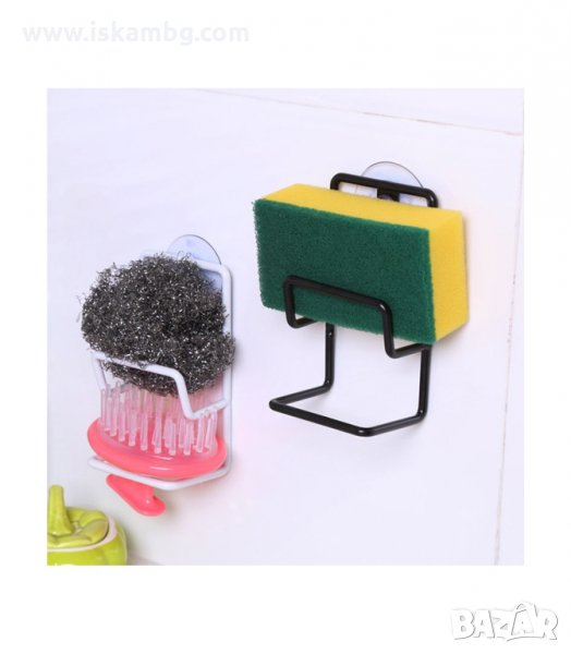 Практична метална стойка с вендуза, която може да използвате както в кухнята, така и в банята. На нея може да съхранявате кухненските гъби и телчета, сапун, гъби за баня, аксесоари, козметика и др. не заема много място и позволява на водата от гъбите да се оттича, така че да не се задържа влага, предпоставка за образуване мухъл, бактерии и неприятни миризми.