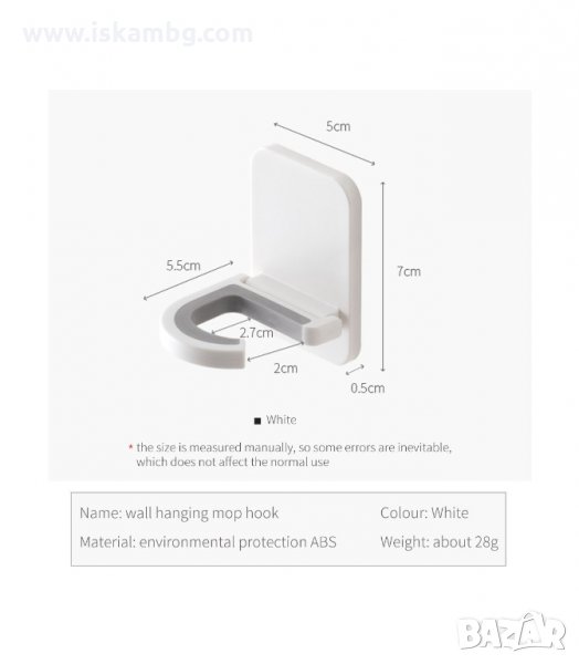 Диаметър на отвора, където се поставя мопа – 2.7 см.
