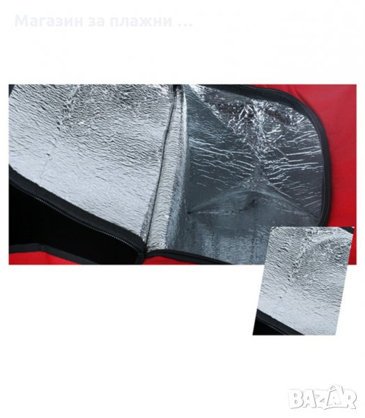 Изработена от устойчива материя, тя може да се пере и носи до 25 кг тежест. Чантата има и термо отделение, което запазва температурата на принципа на хладилна чанта и така ще сте спокойни на по-дълъг път .