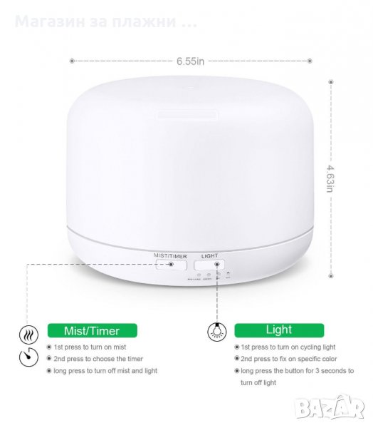 ДИЗАЙН: Формата и цветът му го правят подходящ за всяко жилище и офис. Компактен и преносим дизайн. Капакът лесно се маха, добавете вода и капки етерично масло, а след това се насладете на дълбока релаксация.