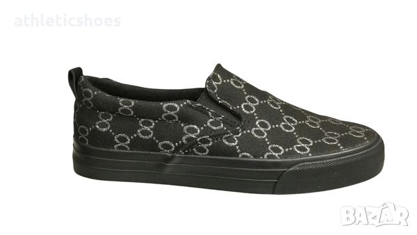 Дамски гуменки от текстил с ластик в двата края , за лесно обуване . Удобна гъвкава , мека подметка .