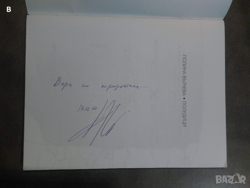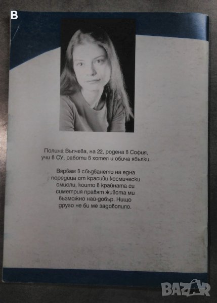 В отлично състояние. С автентичен автограф на поетесата. Издателство: Европа 2001, София 2002 г. Страници: 32. Меки корици.