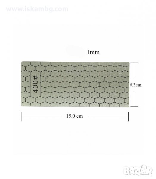 На повърхността на този камък е гравиран образец, наподобяващ пчелна пита. Диамантеното покритие е надеждно и износоустойчиво, необичаен дизайн: на повърхността на този камък е гравиран образец, наподобяващ пчелна пита. Диамантеното покритие е надеждно и износоустойчиво. На обратната страна има лепкава повърхност, която предотвратява плъзгането на лентата. Използвайте диамант като абразивен материал, по-ефективен от нормалния бруск и по-малък риск от увреждане на ръбовете.