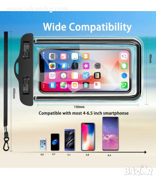 С този калъф няма да се притеснявате от водни пръски и пясък. Ще може да вземете телефона със себе си във водата и да запечатате спомените от лятото. Водоустойчив Калъф за Подводни Снимки! Подходящ за подводни снимки и видео (използвайте го в басейна, на море, плаж, сърф, тропически дъжд, баня).