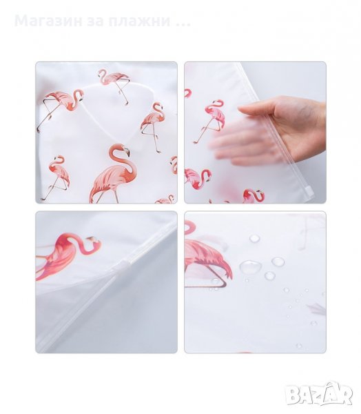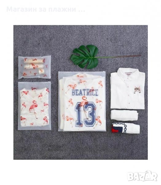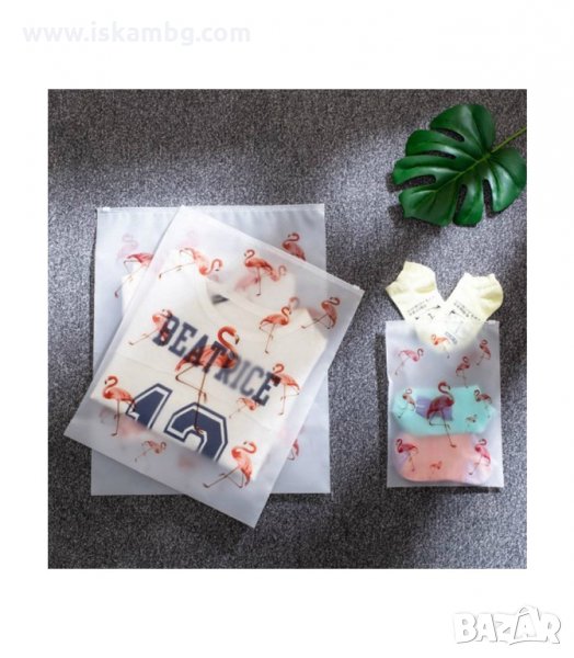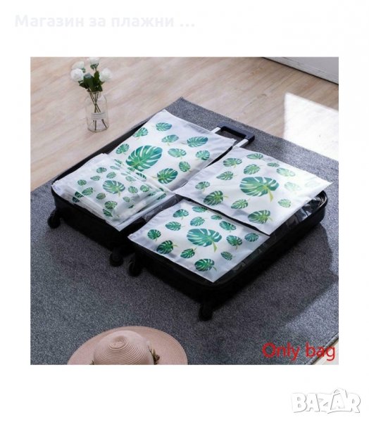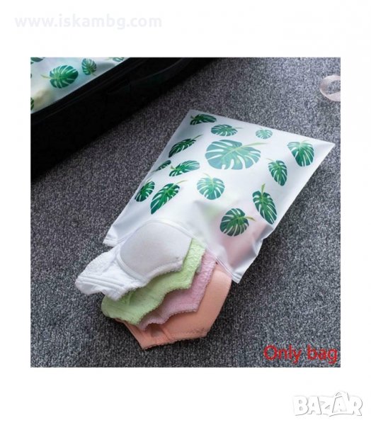 Ако се ужасявате от разхвърлян багаж и предпочитате да държите вещите си под контрол, ще се влюбите в нашите симпатични комплекти с органайзери за дрехи и козметика. Всеки от тях съдържа 5 полупрозрачни плика в 5 удобни размери, подходящи за съхранение на козметика, бельо, документи, лекарства и много други. Пликовете са снабдени с удобен цип за затваряне и са изработени от здрав и водоустойчив материал (EVA), който при правилна поддръжка ще ви служи вярно години наред.