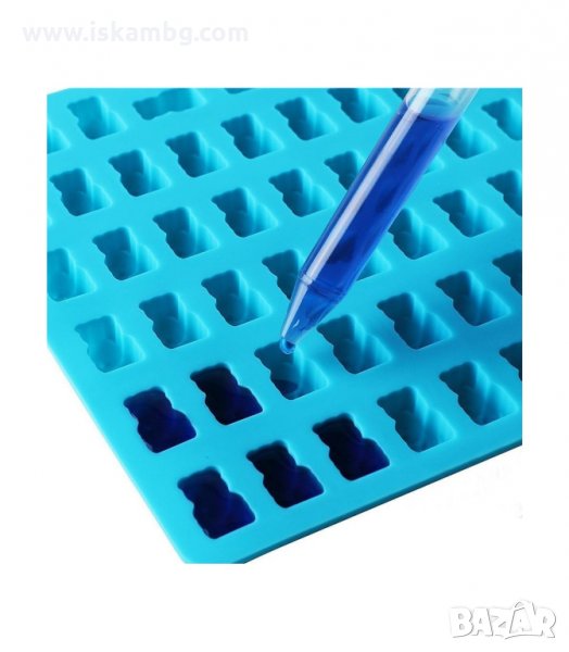 Силиконова форма за желирани бонбони с 56 гнезда. Тавичката мини формички на класически мечета. Формата е подходяща за приготвяне на домашни желирани бонбони, шоколадови бонбони или други сладки лакомства. Подходяща за печене или замразяване.