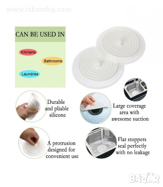 Еластичен, затварящ плътно сифона в банята или кухнята капак. Благодарение на качественият и гъвкав материал, тапата приляга много добре върху формата на подовият сифон и пода. Предотвратява проникването на миризми от канализацията, навлизането на насекоми /хлебарки/. Има монтирана метална халка (пръстен) за лесно преместване и вдигане на капака.