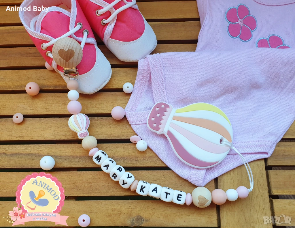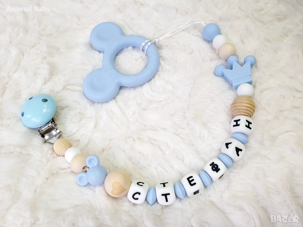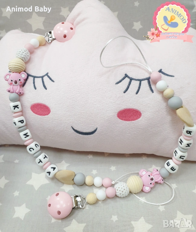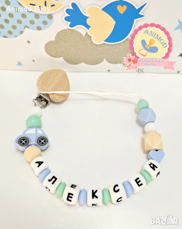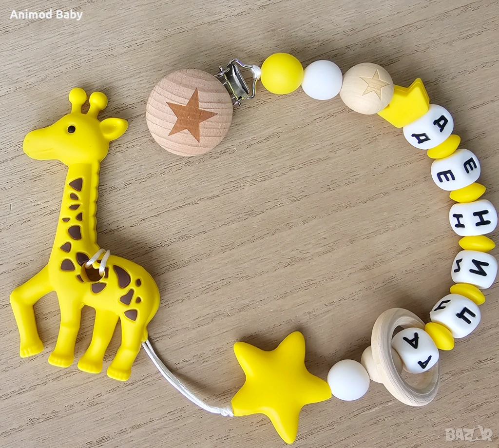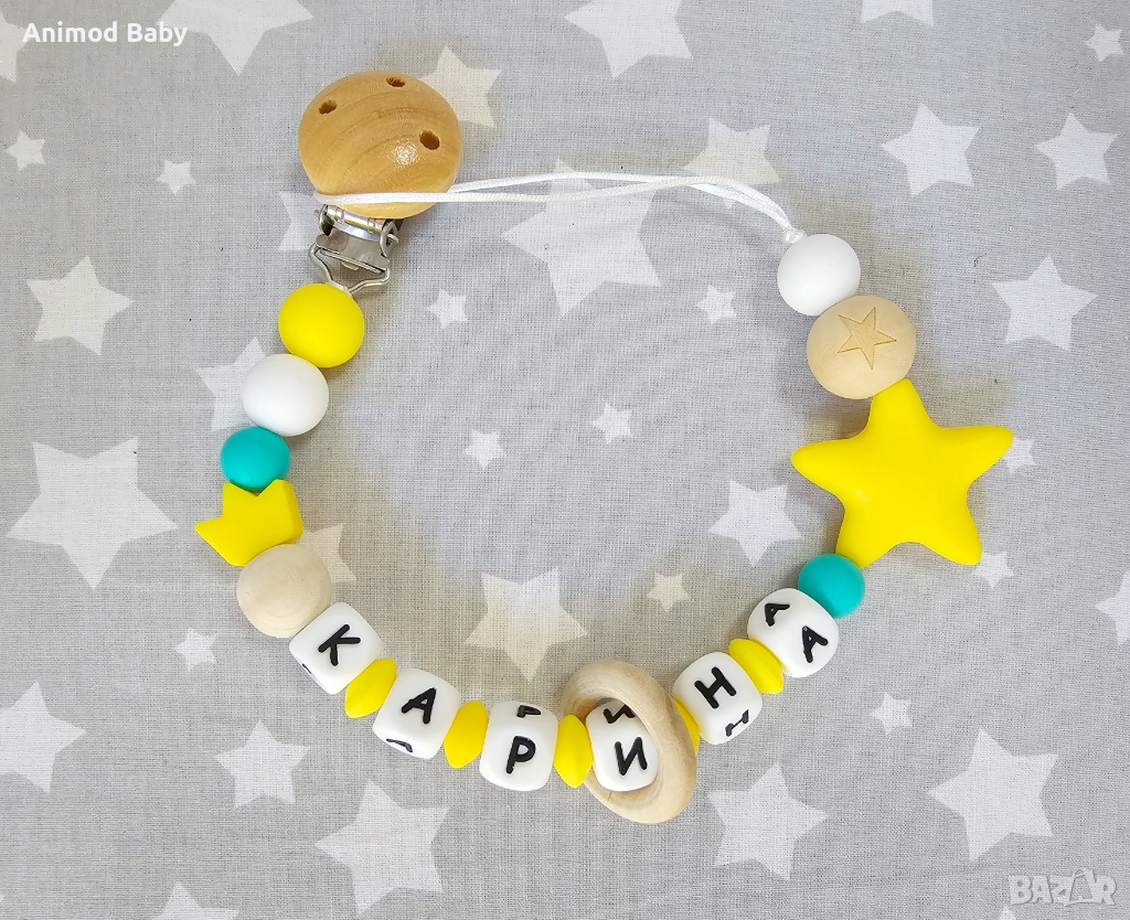 Всеки клипс може да бъде изработен само от хранителен силикон или в комбинация от силиконови и дървени мъниста.