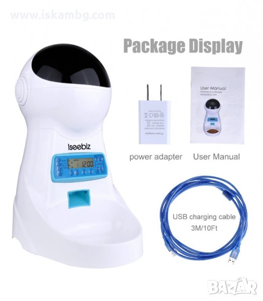 Хранилката е оборудвана с дисплей и таймер, които ви позволяват да настроите часовете и пътите на пускане на храна, както и да създадете 10 секундно аудио, приканващо вашия любимец за храна, без дори да сте вкъщи.