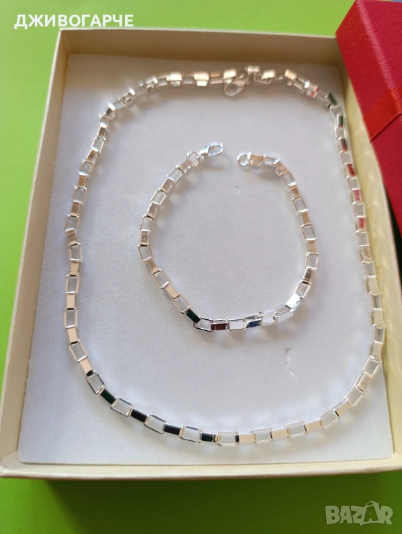 Нов, масивен сребърен комплект- ланец и гривна. С подаръчна кутия → Обява 33939208