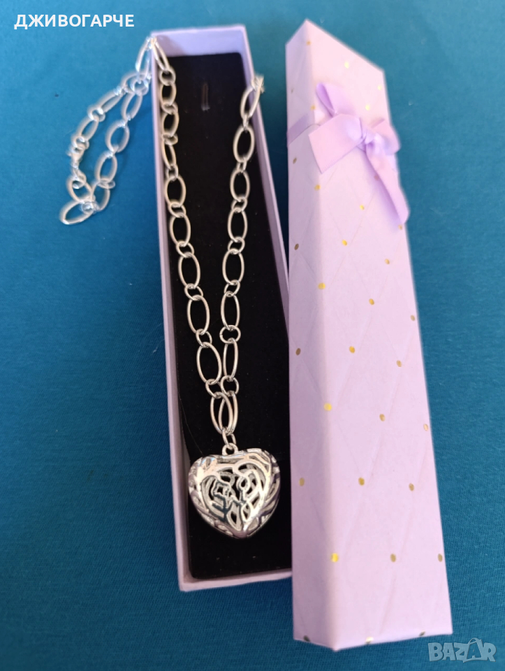 Ново, масивно, сребърно колие със сърце. В подаръчна кутия → Обява 33939304
