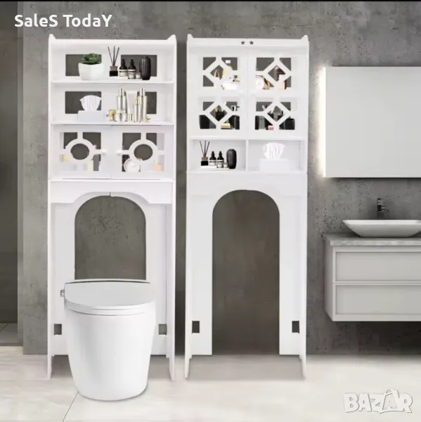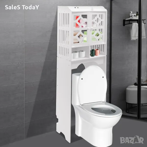 Шкафът е проектиран да се монтира над тоалетната, като използва вертикалното пространство в банята.Шкафът е специално проектиран за баня, като предлага място за съхранение на тоалетни принадлежности, почистващи препарати и други вещи.