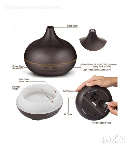 Прекрасен арома овлажнител за въздух от ново поколение. Използва утразвукови вълни, за да пречиства, овлажнява и ароматизира въздуха. Подходящ за всяко помещение в дома или офиса ви. Можете да използвате както вода, така и етерични масла, които да помогнат за премахване на лошите миризми и да преборят умората и стреса от вашето натоварено ежедневие. Изключително безшумен, което го прави подходящ за вашата спалня или тази на вашето дете.