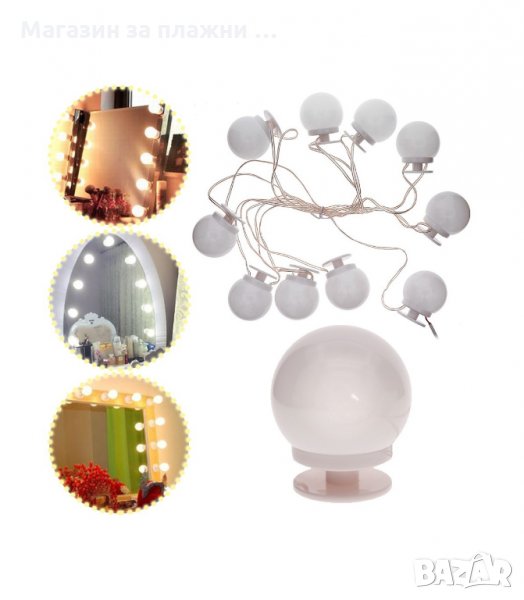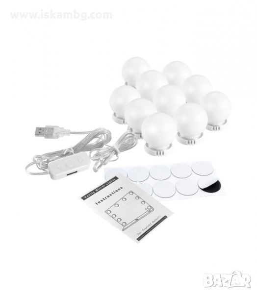 Направете огледалото си като на истинска звезда! С този комплект крушки, ще превърнете вашето кътче за красота в будоар! Крушките монтирате много лесно - чрез самозалепваща лента или вендуза директно върху стъклото. Интензитетът на осветлнието може да се регулира (ако си поръчате модела с регулиране силата на светене, който е с 8лв по-скъп). Имате идеално осветено огледало, независимо за кое време на денонощието става дума. Разстоянието между отделните крушки може да се регулира, така че може да ги разположите както ви е най-удобно.