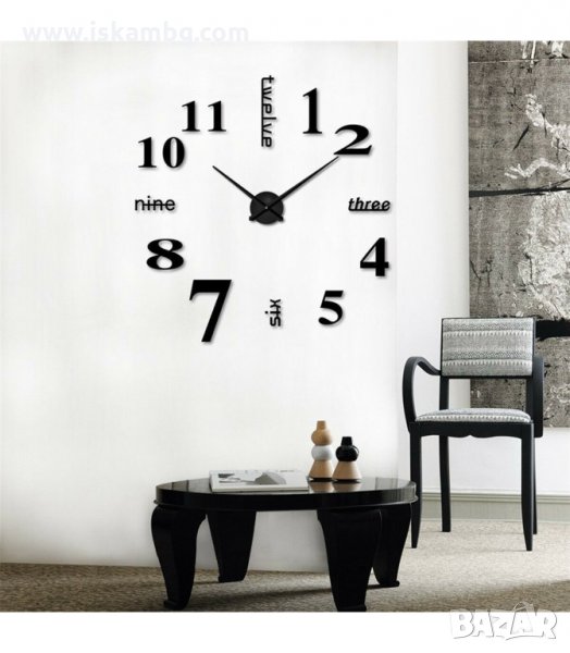 Ефектен стенен часовник- стикер в лилав цвят с модерен дизайн. С огледални големи цифри залепващи се се на стената, без да оставят следи при демонтаж.