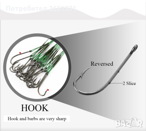 размер на куката: 16 см. - #4 и 20 см. - #1, #2/0